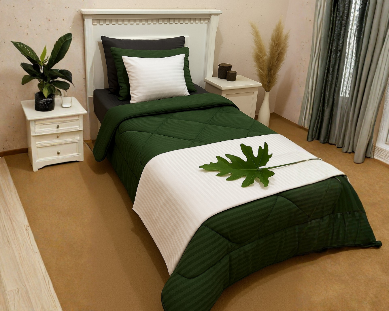 ست لحاف تکنفره ٤ تکه؛ شامل: لحاف دورویه(زیره: میکرو، رویه: هتلی ژاکارد) - ملحفه کشدار میکرو ساده - ١ عدد