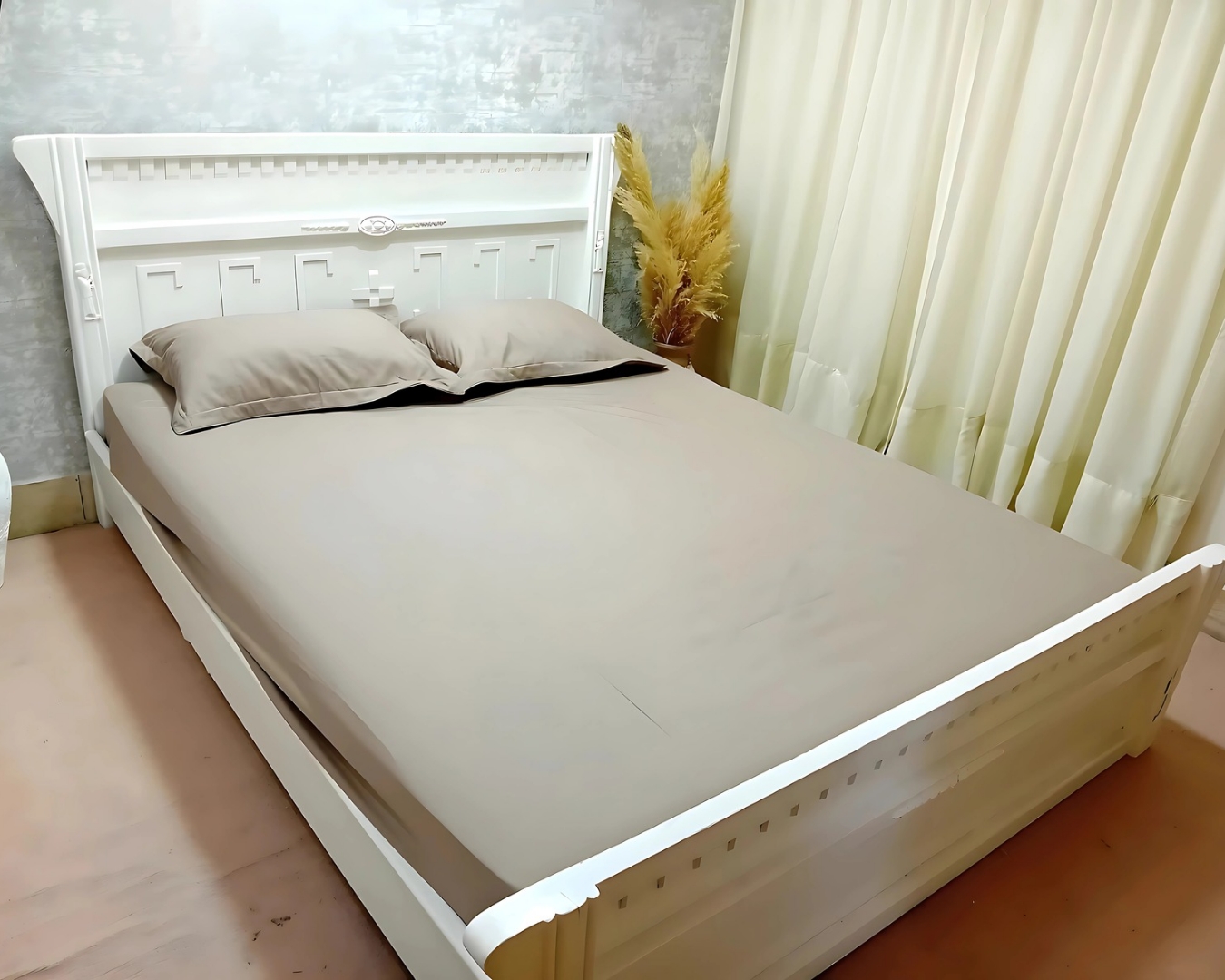 ملحفه کشدار دونفره؛ با پارچه میکرو ۱۲۰ ساده. همراه با ۲ عدد روبالشتی. با ضمانت کیفی شستشو. عدم گرهگره شدن پارچه. با الیاف بسیار نرم و لطیف